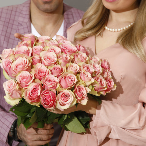 This baby pink bouquet combines delicate shades of soft pink blooms, thoughtfully arranged to convey elegance and charm. Perfect for celebrations or expressing gentle affection.