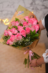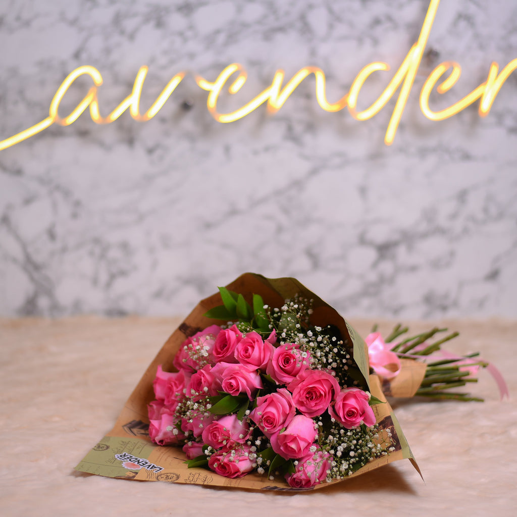 The Scarlet bouquet features richly hued pink blooms arranged to create a striking, elegant centerpiece.